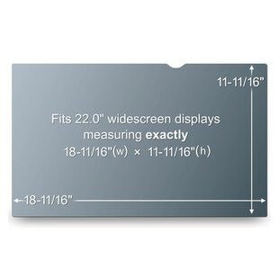 - PF22.0W fits widescreen desktop monitors with a diagonally measured 22" viewing screen. - Actual filter dimensions are 18.67" wide x 11.68" high. - This filter is designed for widescreen desktop monitors with screens that appear more rectangular than square. - Helps keep confidential and private information safe. - Utilizes 3M's microlouver privacy technology so only persons directly in front of the monitor can see the image on screen. - Passersby see only a dark screen. - Excellent for high traffic areas. - Reversible for either glossy or matte screen finish. - Reduces reflections when used with the matte side facing you. - Helps to protect your LCD panel from scratches and abrasions. - Easy on easy off attachment system.