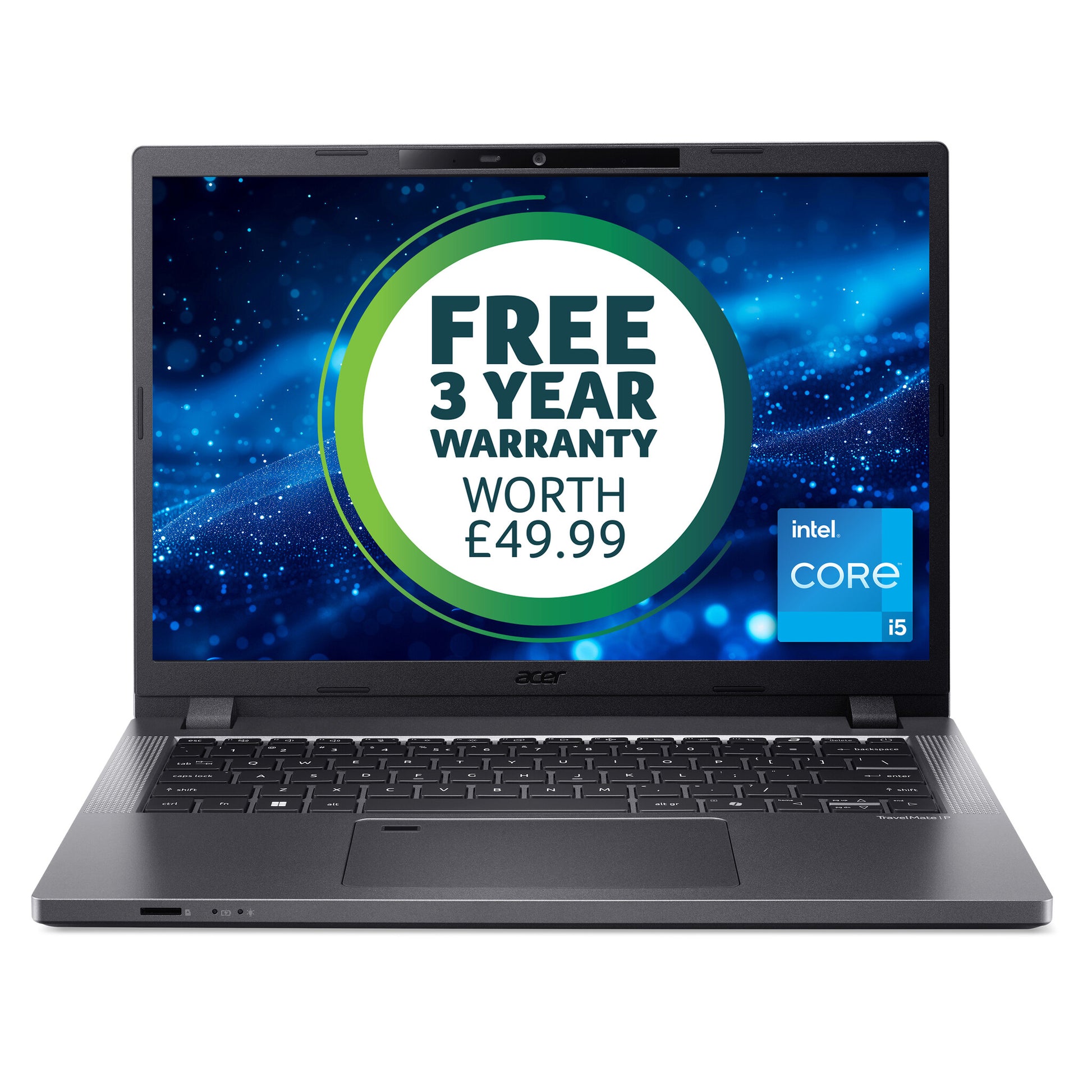 MIL-810H3 tested, it is designed to be reliable and sustainably responsible, the TravelMate P2 undergoes rigorous reliability tests while taking the lead in incorporating recycled materials within its design.