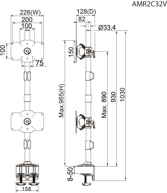 The AMR2C32V is a clamp-style monitor stand with an adjustable height that supports up to 2 LCD monitors. The vertical and clamp construction of this mount allows for more work space and a great number of advantages for those wanting to create a more ergonomic and functional environment. SEE MORE and DO MORE™ with features like: Arm Angle-Adjust, Smart T orque Adjust, Aluminum Alloy Structure, Easy Installation, 90 degrees rotation and Height Adjust. In addition to these features, the device is also compatible with VESA 100×100/75X75 and suitable for monitor sizes 24” to 32”.