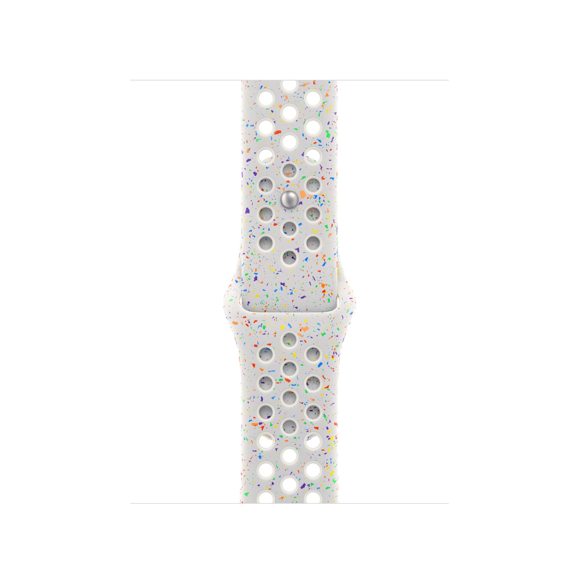 Made with compression-molded perforations for breathability, the Nike Sport Band is durable and strong, yet surprisingly soft. It features colourful flakes that create a randomized pattern, making each strap completely unique. The smooth, dense material drapes elegantly across your wrist and feels comfortable next to your skin. An aluminum pin-and-tuck closure gives the pin a fresh matte finish.