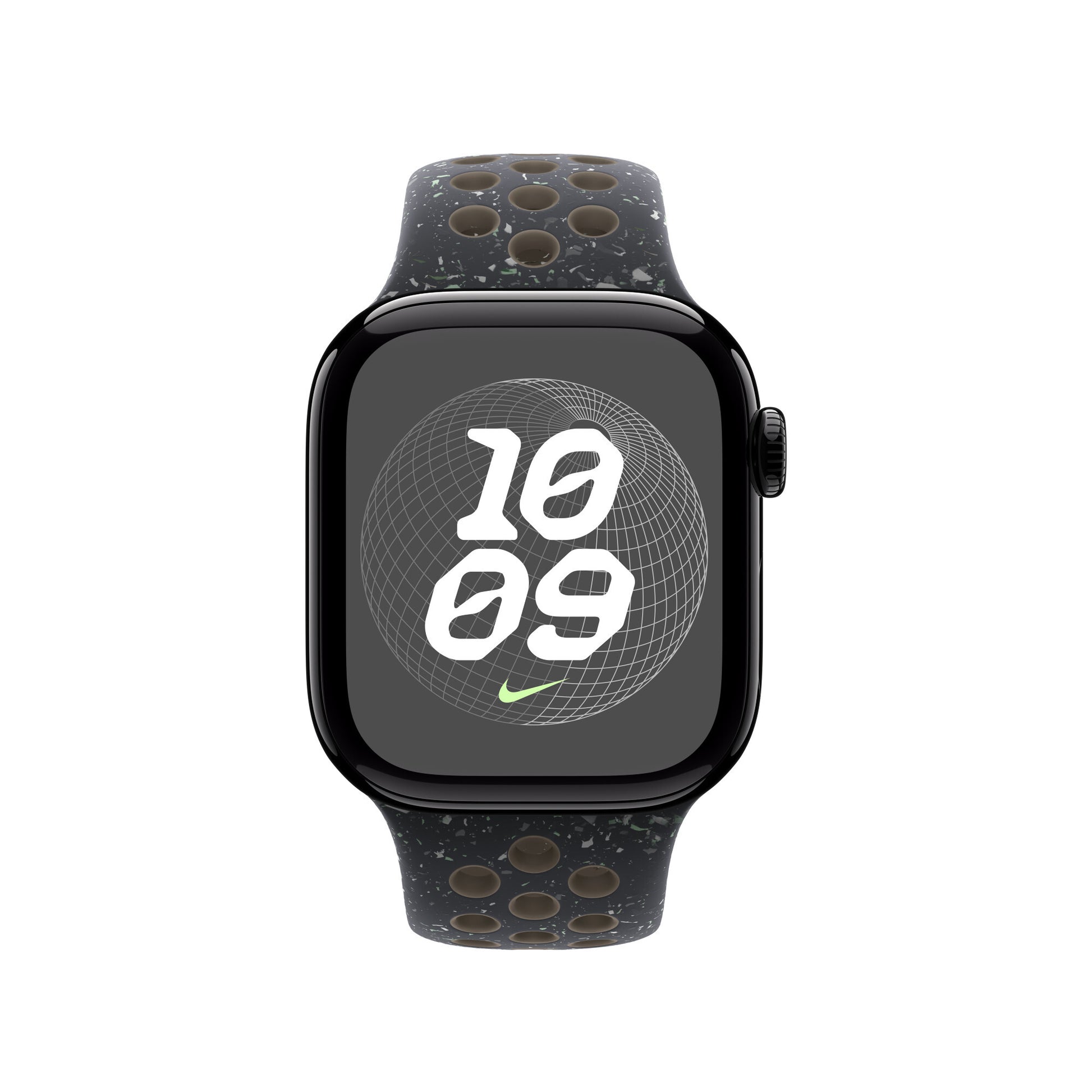 Made with compression-molded perforations for breathability, the Nike Sport Band is durable and strong, yet surprisingly soft. It features colourful flakes that create a randomized pattern, making each strap completely unique. The smooth, dense material drapes elegantly across your wrist and feels comfortable next to your skin. An aluminum pin-and-tuck closure gives the pin a fresh matte finish.