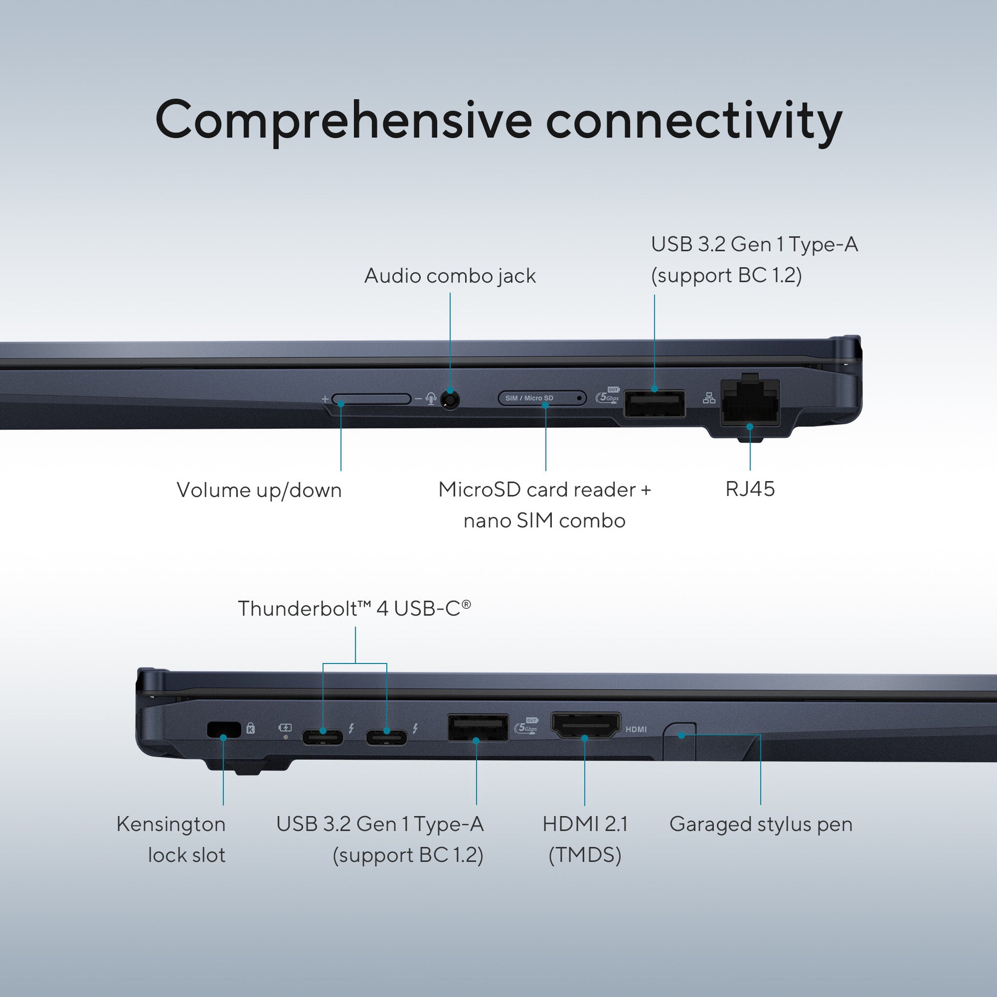 Maximum flexibility anytime, anywhere ASUS ExpertBook B3 Flip is built to embrace the new normal, empowering you to work or learn flexibly and effortlessly — anytime and anywhere. Its versatile 360°-flippable design and handy garaged stylus enables total flexibility, empowering use in diverse settings and scenarios. It’s also engineered with two-way AI noise-cancelation technology to ensure distraction-free communications at both ends of online conversations, at home, in the office or on the move. For better everyday hygiene, it’s treated with features ASUS Antibacterial Guard — inhibiting the growth of bacteria by up to 99%. It even has the latest 4G LTE and WiFi 6E technologies, ensuring safe, secure and speedy mobile connectivity is easier than ever.