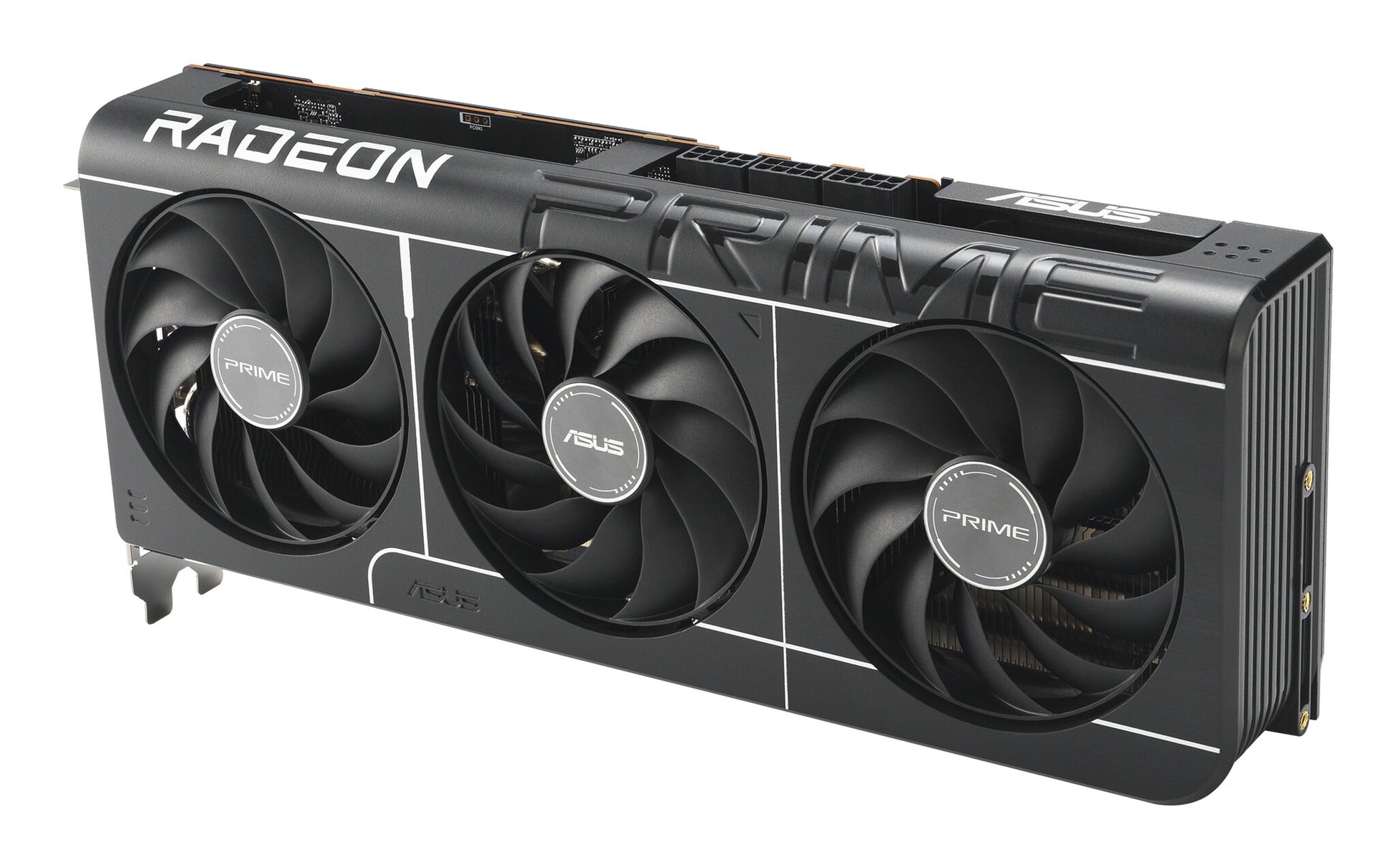 The Prime Radeon™ RX 9070 XT features a 2.5 slot design with a carefully arranged layout for the shroud, heatsink and heat pipes to let the three Axial-tech fans leverage chassis side-panel ventilation and deliver optimal thermal performance.