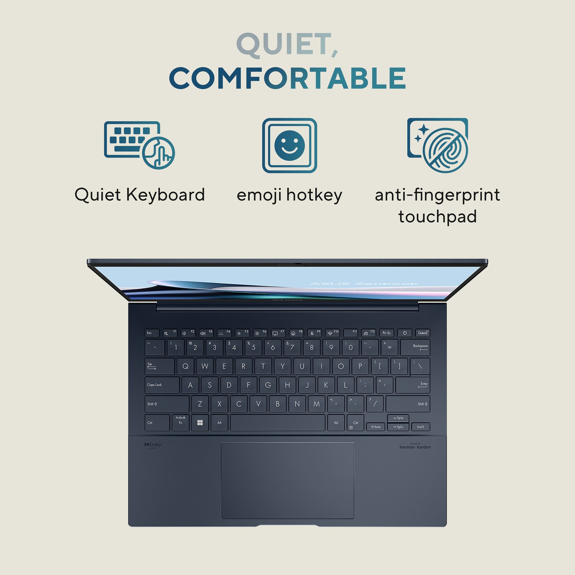 - ASUS ErgoSense quiet keyboard for easy typing