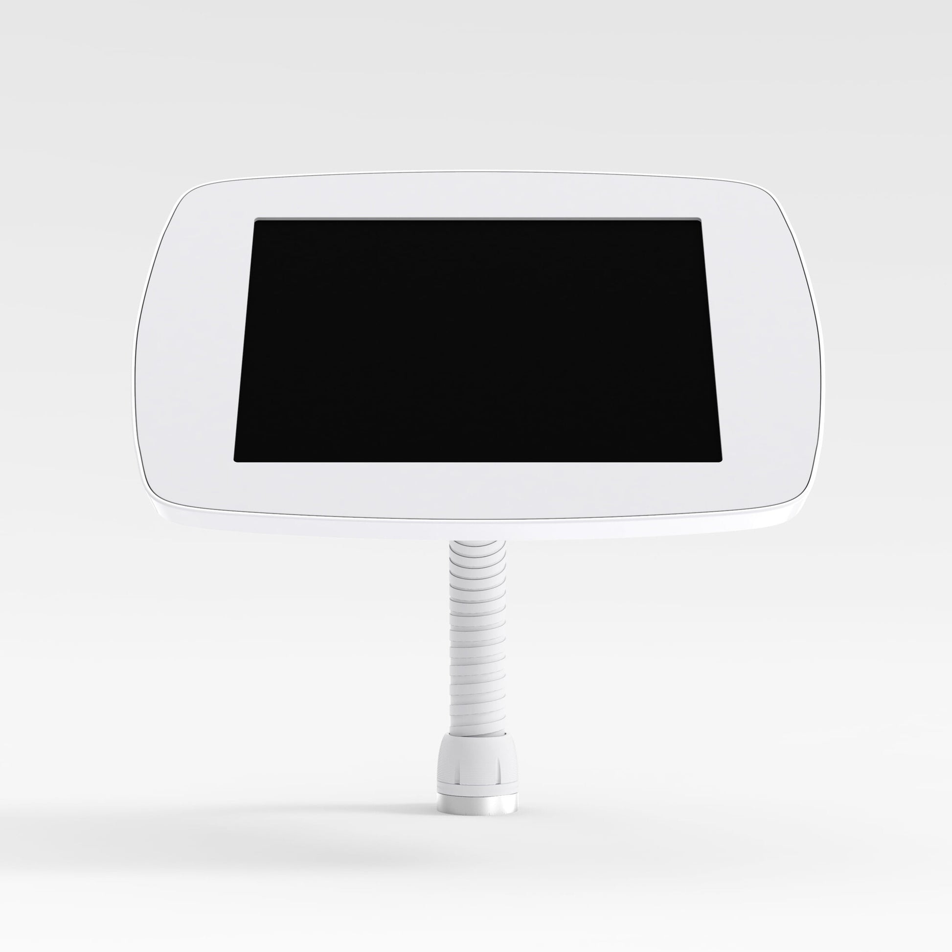 The Bouncepad Flex is a secure, adjustable tablet kiosk ergonomically designed for easy interaction when mounted to a counter, table or desk. The adjustable gooseneck mount offers a full range of movement so it can be positioned at the perfect angle for user interaction. This desk mounted enclosure is compatible with iPad, Samsung and Microsoft tablets.