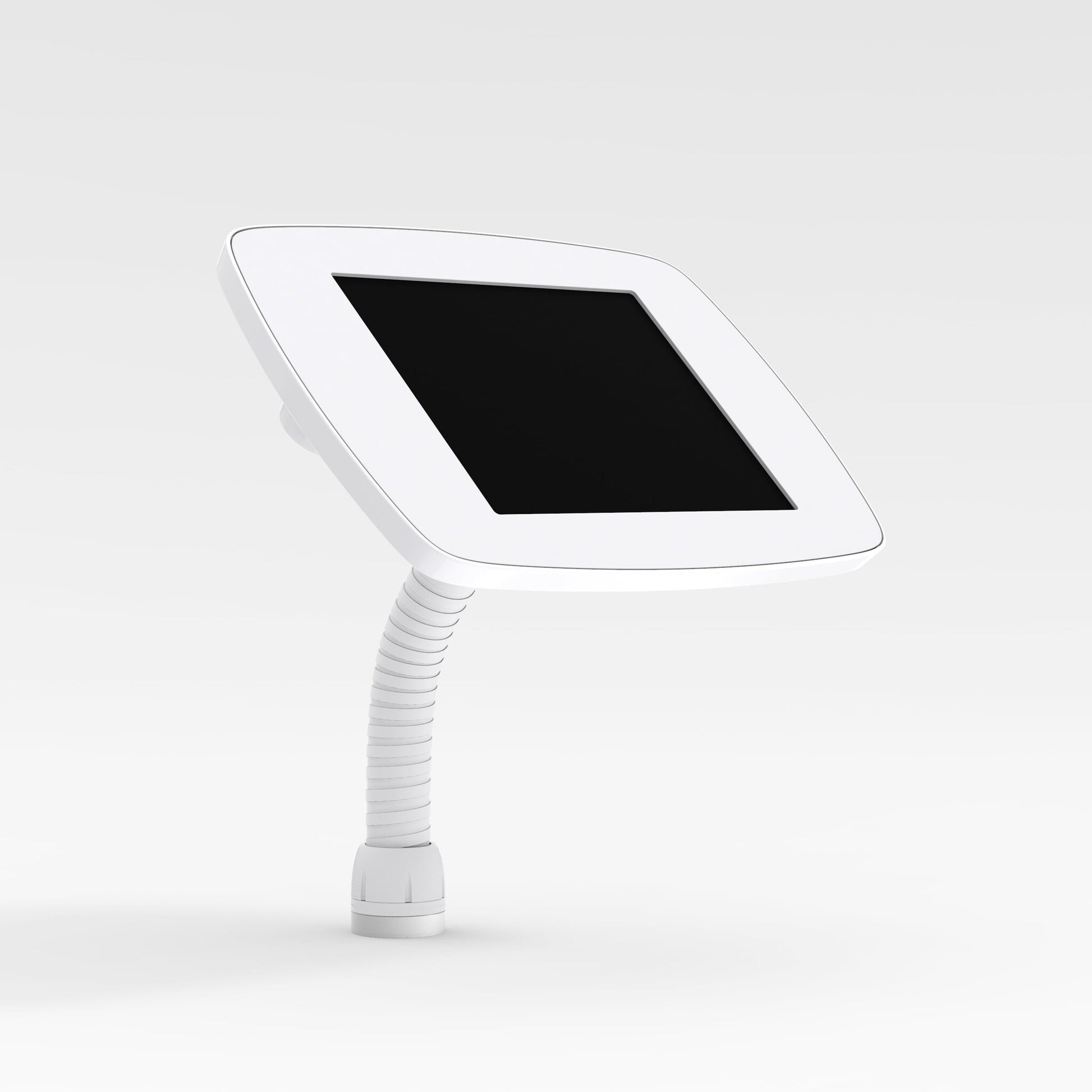 The Bouncepad Flex is a secure, adjustable tablet kiosk ergonomically designed for easy interaction when mounted to a counter, table or desk. The adjustable gooseneck mount offers a full range of movement so it can be positioned at the perfect angle for user interaction. This desk mounted enclosure is compatible with iPad, Samsung and Microsoft tablets.
