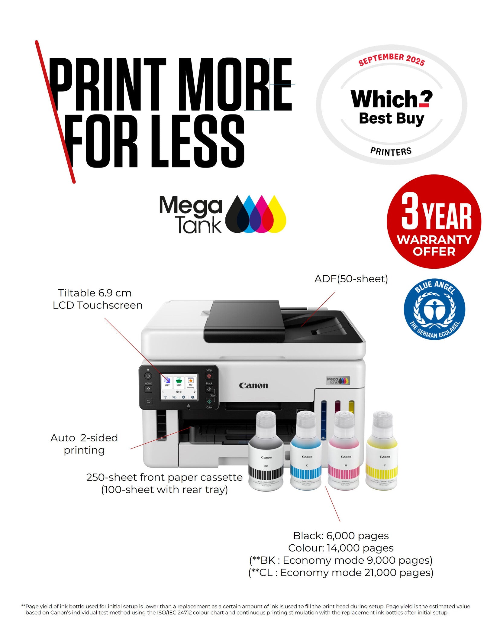SMALL DECISIONS, MAXIMUM IMPACT Produce business-quality documents quickly with average savings of 90% on the total cost of ownership vs top 10 laser and inkjet printers with these ever-dependable, high-volume refillable MegaTank printers.