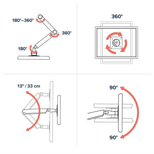 - Protect your space: Rotation-stop base keeps arm from hitting the wall or other desks