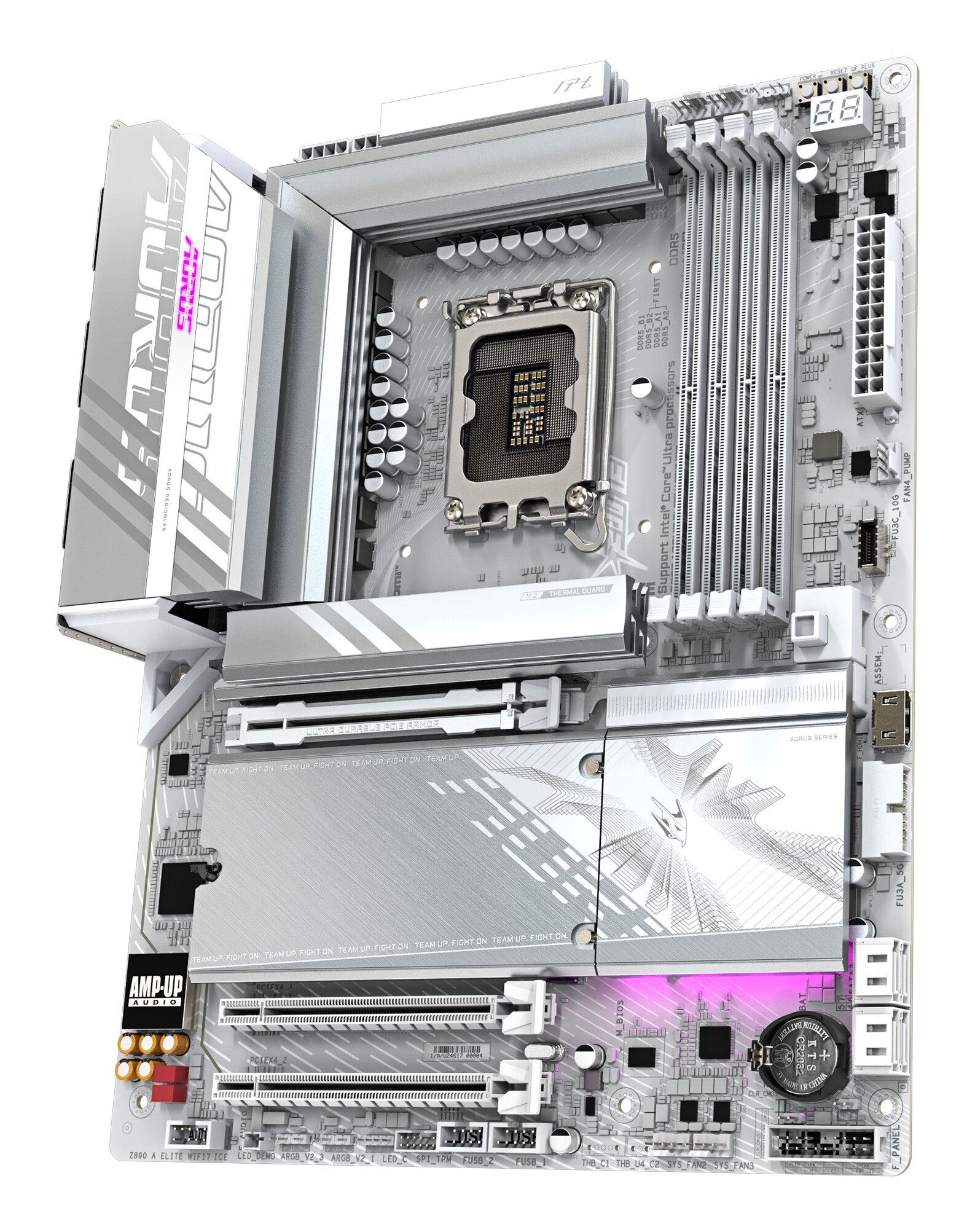 Z890 AORUS ELITE WIFI7 ICE Motherboard - Supports Intel Core Ultra (Series 2) CPUs, 16+1+2 phases VRM, up to 8600MHz DDR5 (OC), 1xPCIe 5.0 + 3xPCIe 4.0, Wi-Fi 7, 2.5GbE LAN, Thunderbolt 4