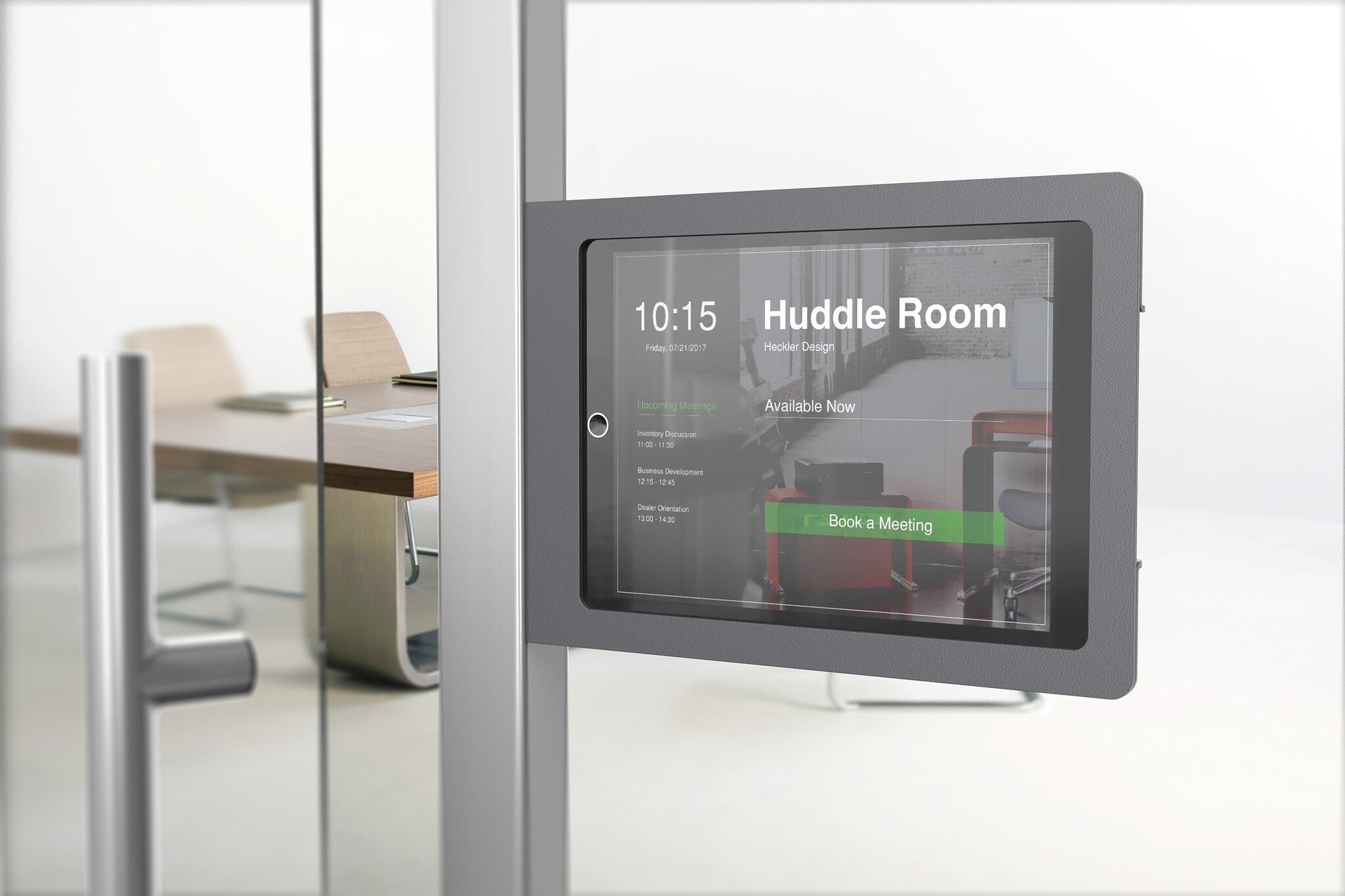 Pretty, simple tablet mounting. Easily mount an iPad outside your conference rooms and meeting rooms to create beautiful scheduling displays. Heckler Side Mount installs to the side of your mullions, features a large, hidden pocket to hide PoE power adapters, networking adapters, and external power banks (all sold separately)‚ all while maintaining a slim profile. Heckler Side Mount features our incredibly rigid, commercial-grade construction, simple installation, hidden assembly screws, fingerprint-resistant, and scratch-resistant powder coat finish. Pair with a PoE Splitter (sold separately) to keep your iPad powered throughout the day.