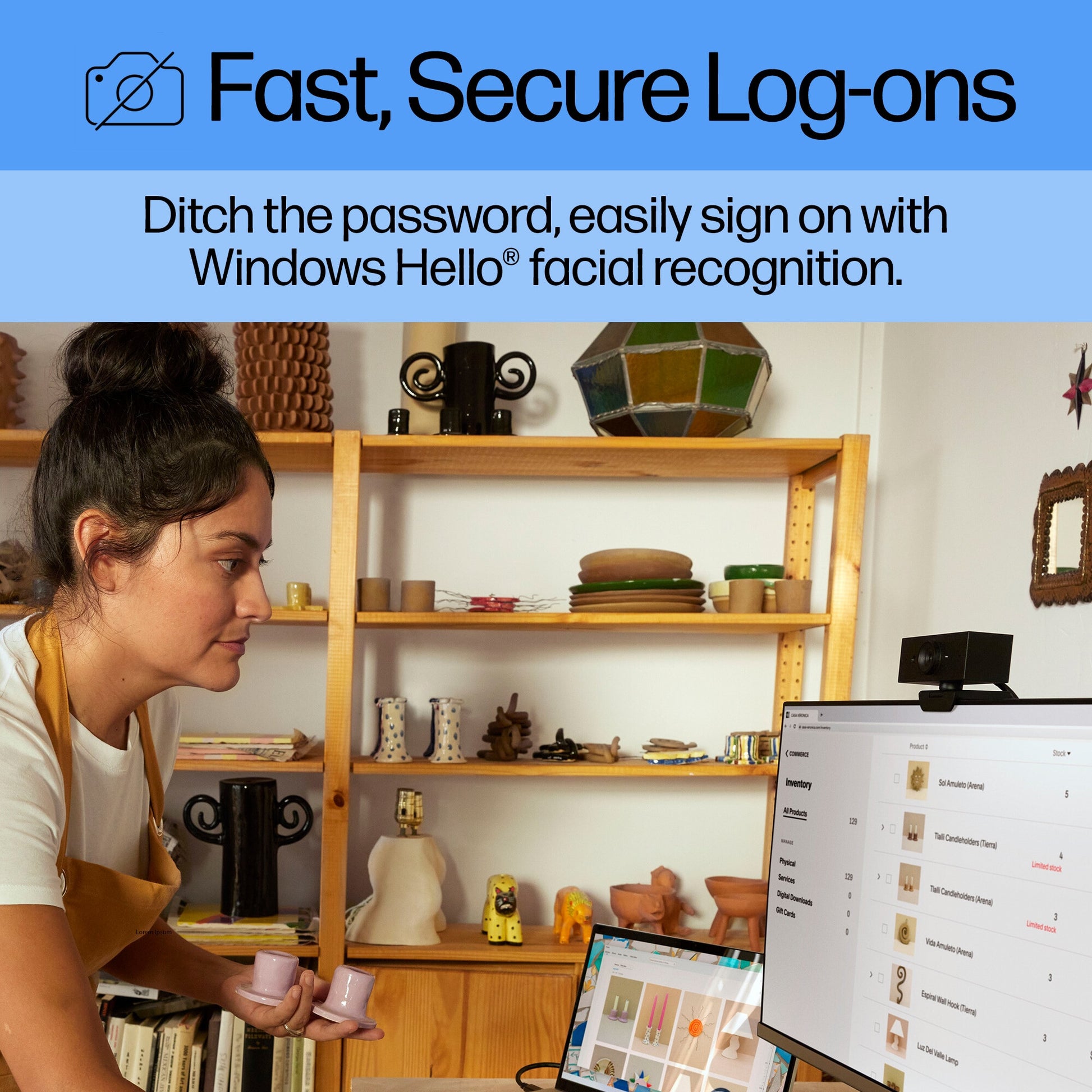 This Windows Hello compatible[1] webcam logs you in seamlessly and securely while AI-enhancements help you look good from the start. Effortlessly look your best wherever you find yourself with Full HD resolution, customization and automatic background adjustments.