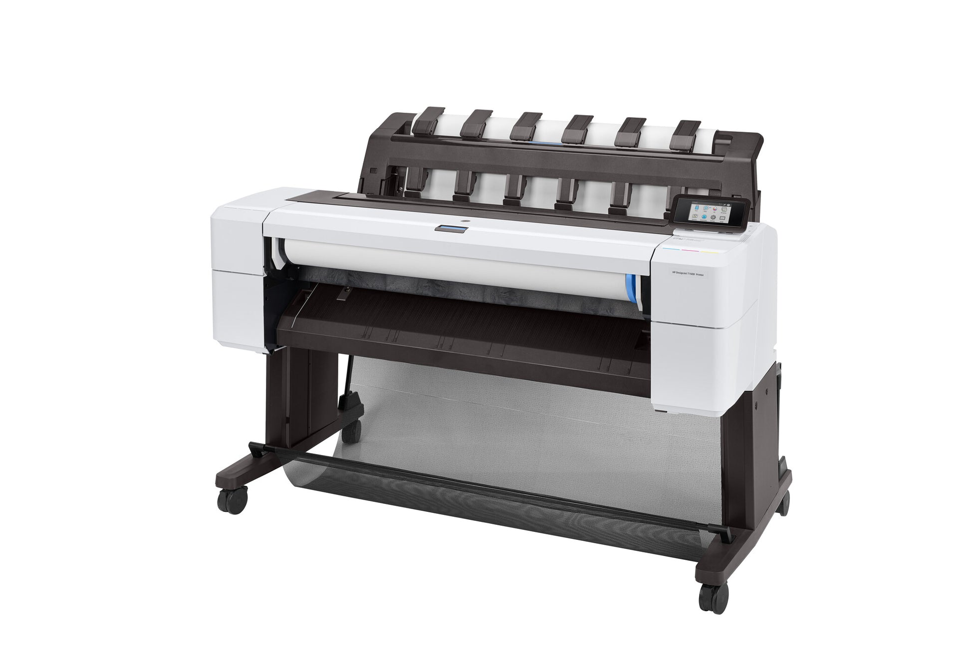 HP DesignJet T1600 Printer, printer stand and media bin, spindle, printheads, introductory ink cartridges, user guide, power cords