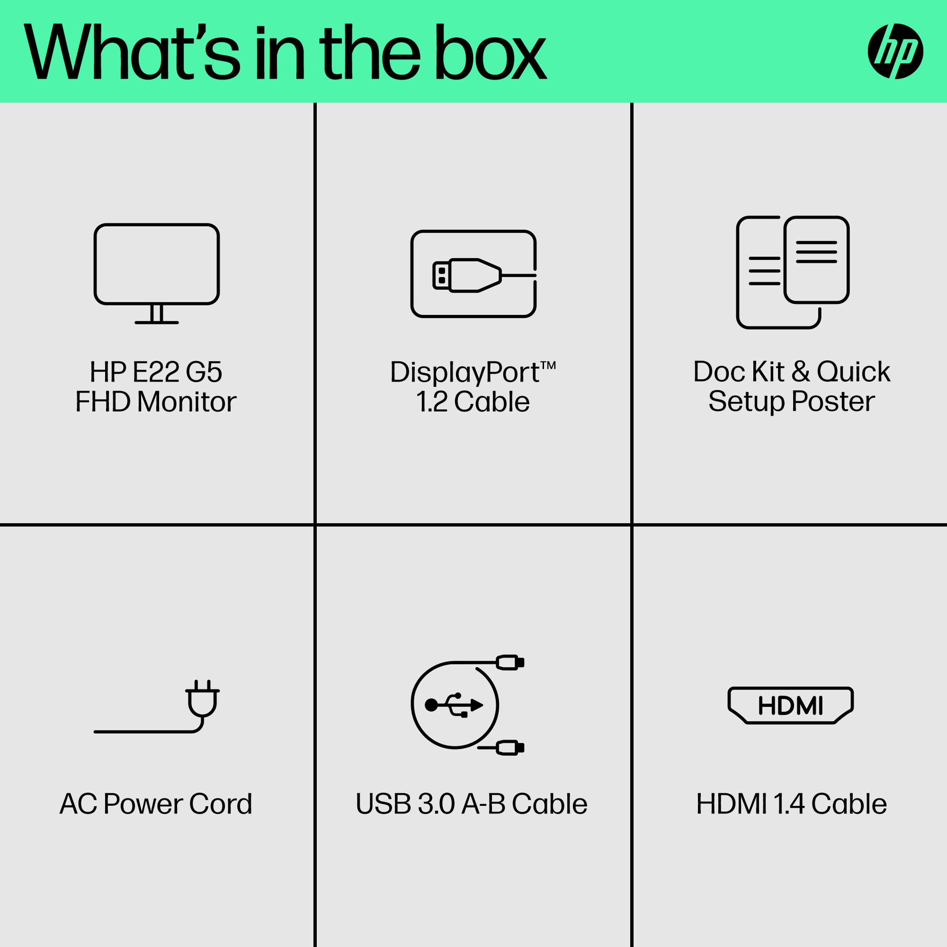 Intentionally crafted to deliver crisp visuals, personalized comfort, and true flexibility, the HP E22 G5 FHD Monitor redefines comfort, so there's nothing between you and your best. Stylishly designed with the planet in mind, this display is the perfect fit for both the office and home.