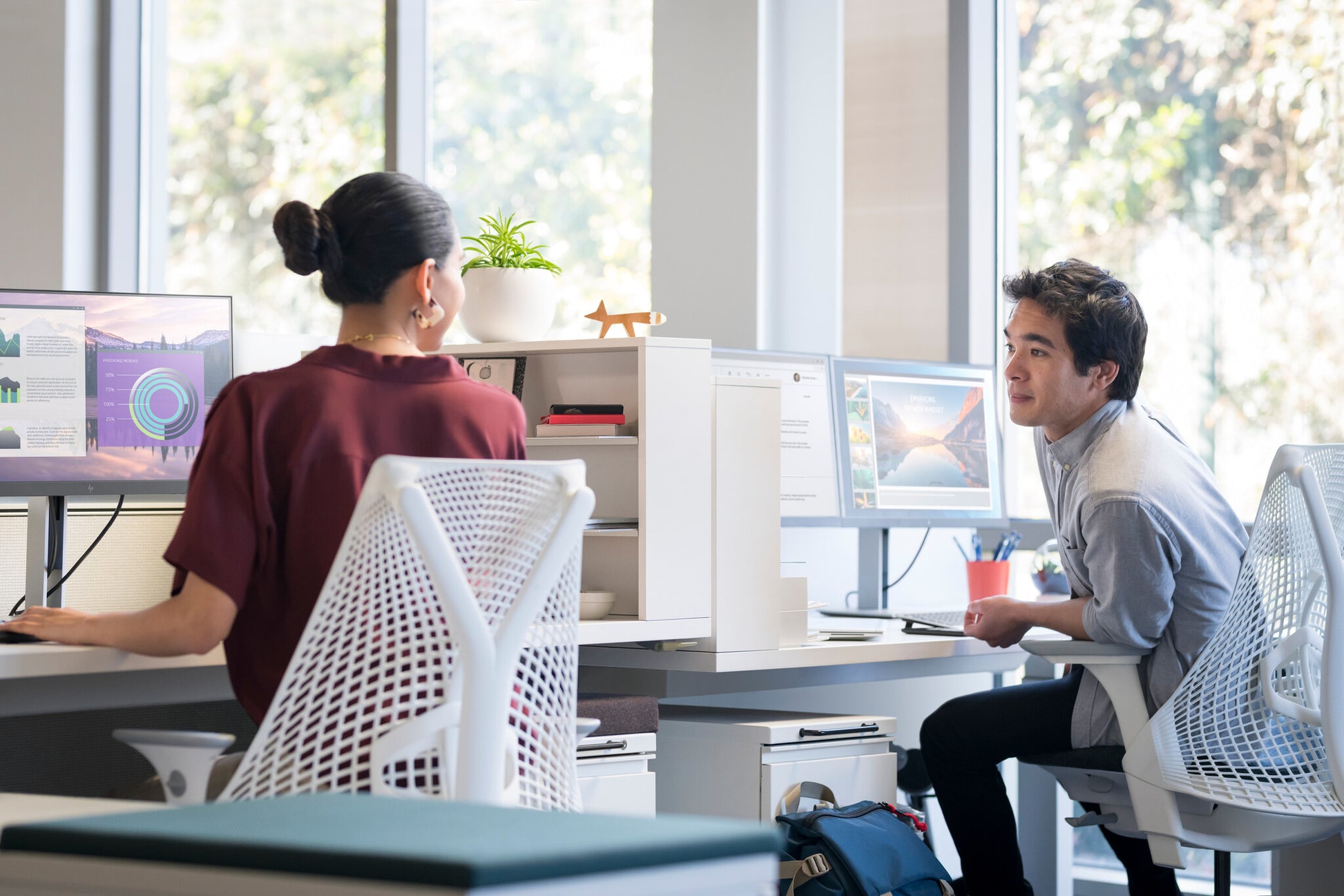 - Keep your eyes comfortable through the work day with HP Eye Ease, our first built-in, always-on blue light filter that has zero impact on your color accuracy and works without an OSD.