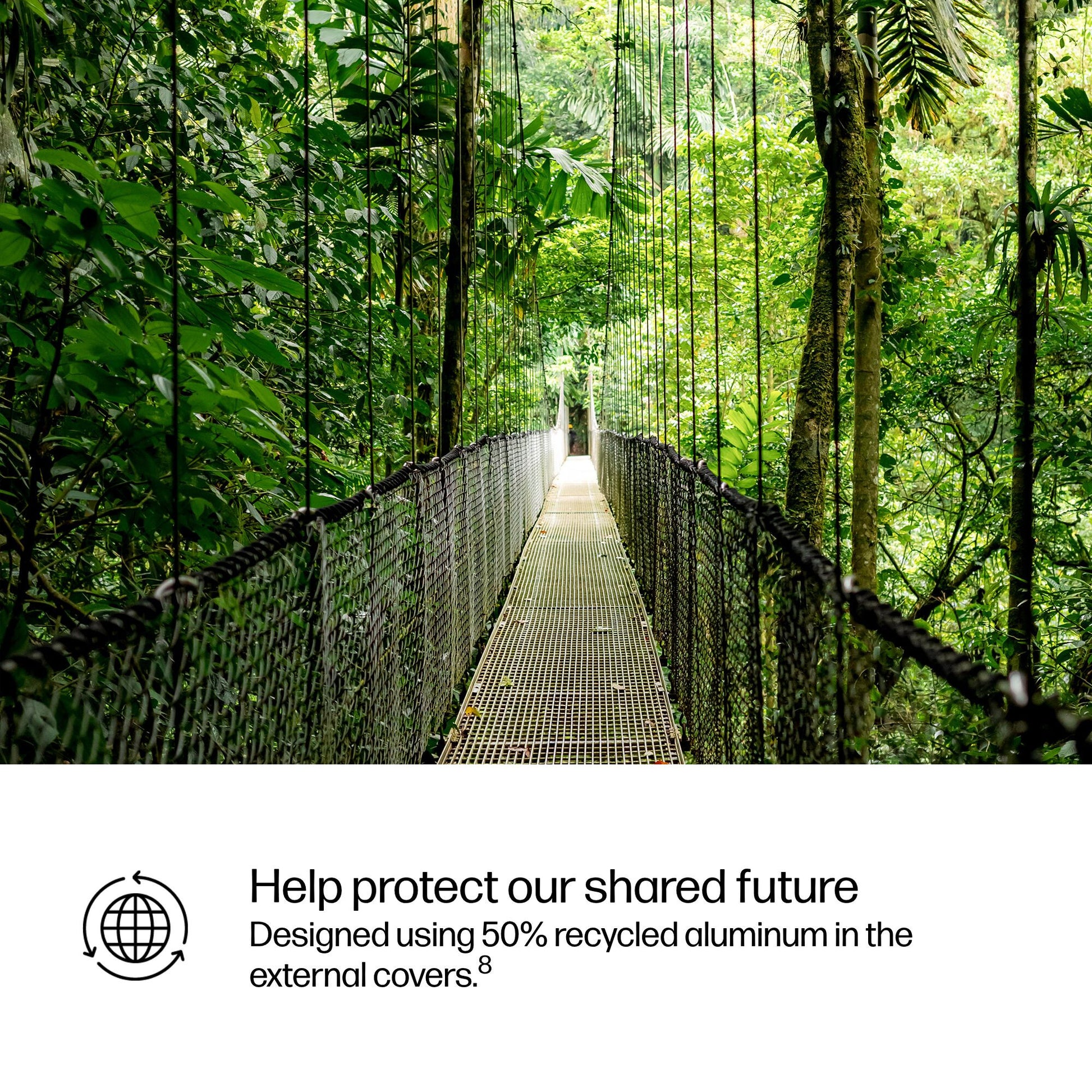 Low halogen; Bulk packaging available; 20% post-consumer recycled plastic; 50% recycled metal; 50% ocean-bound plastic in fan enclosure; 100% of HP paper-based packaging is from recycled or certified sustainable sources