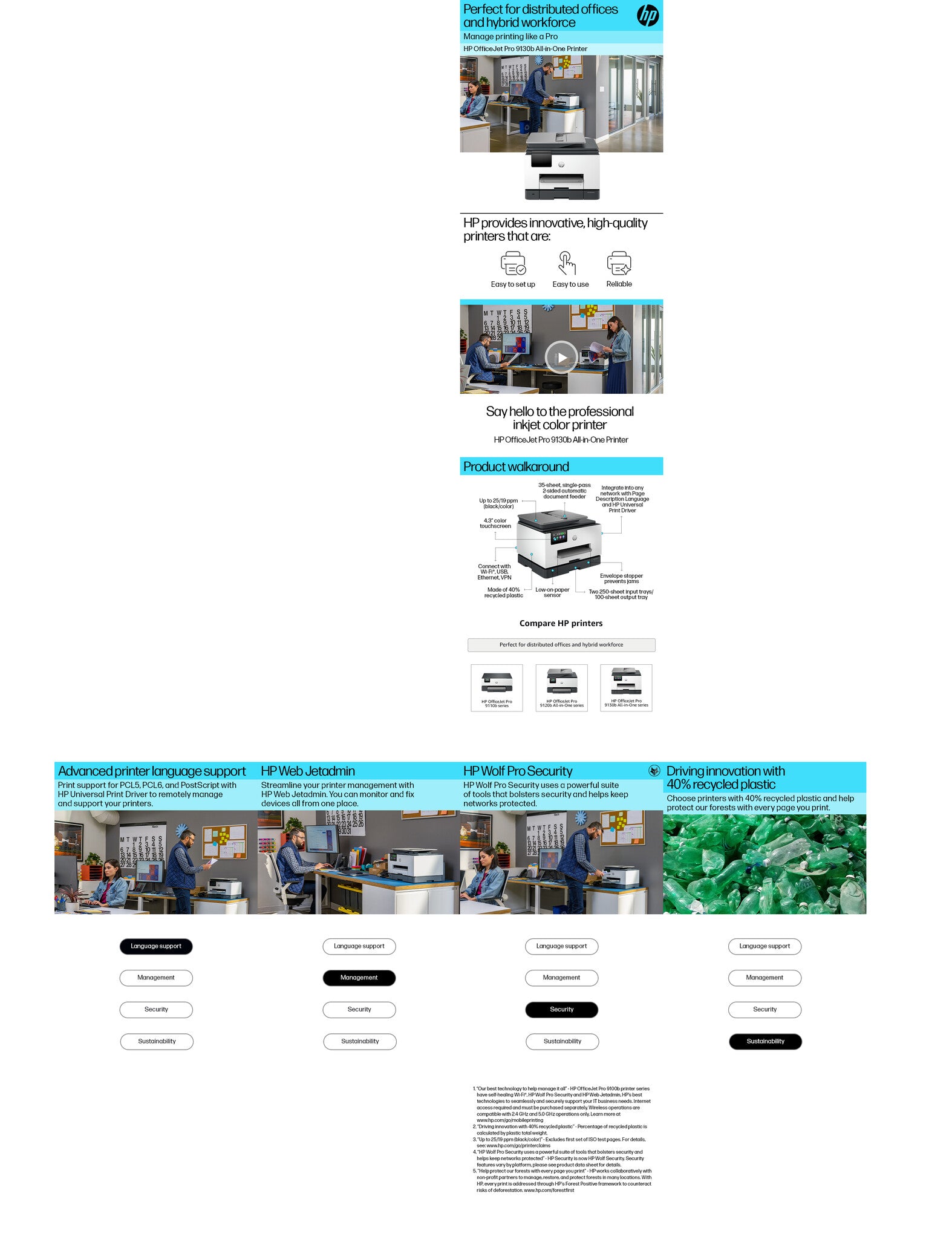 Manage printing like a Pro. The professional colour inkjet printer for distributed offices/hybrid workforce from the World’s #1 Printer Company, paired with our best technology to help manage it all. This streamlines work into any network with extra performance features.[1,2].