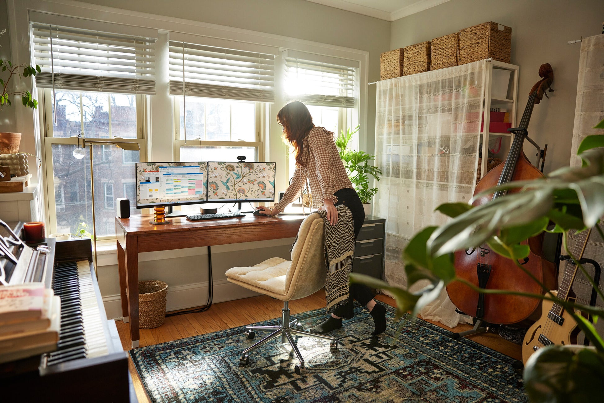• Clear your desk and keep the focus on your screen through a sleek 3-sided borderless bezel, neat cable management, and a 27% smaller stand base[2] with adjustable tilt and height for your perfect view.