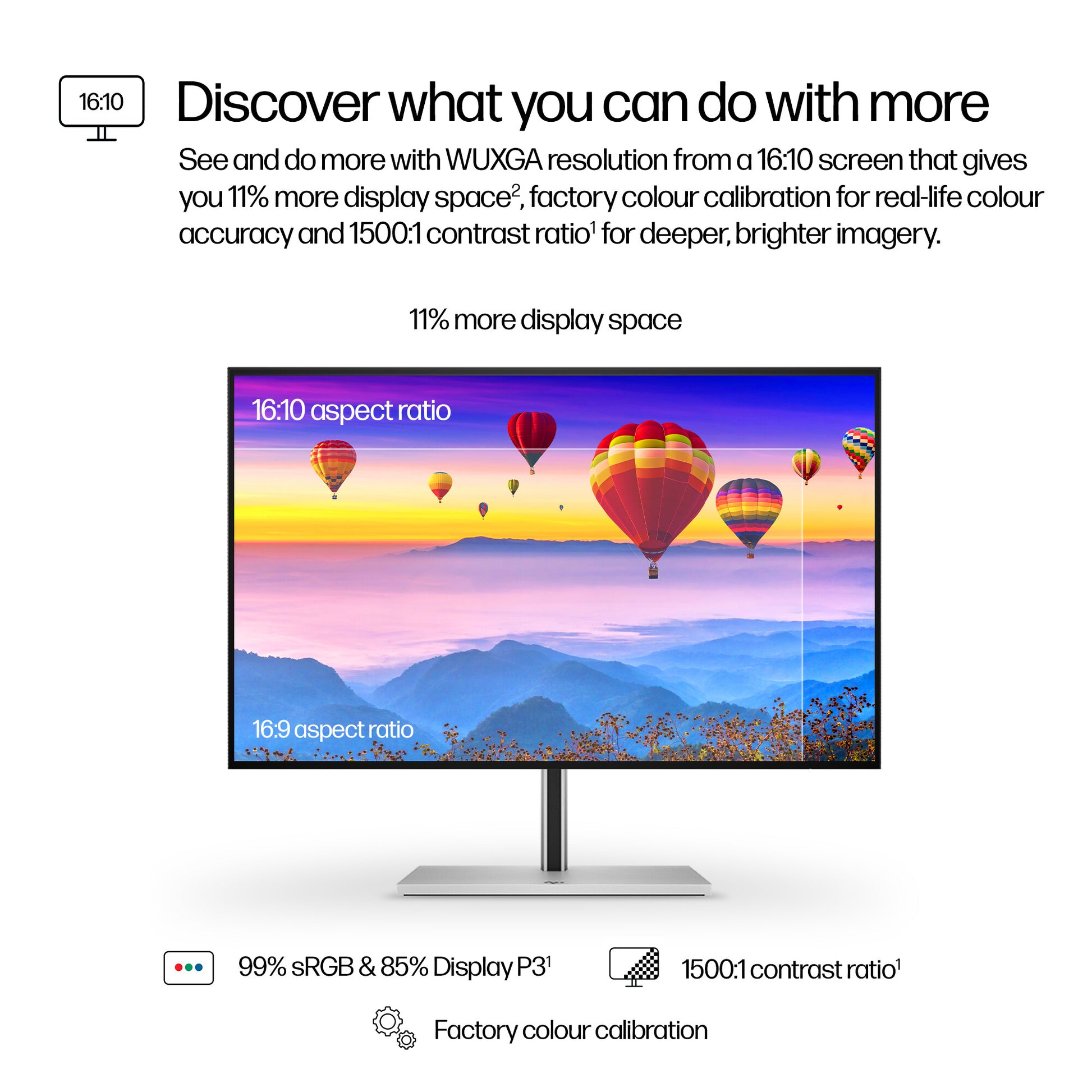 See and do more with WUXGA resolution from a 16:10 screen that gives you 11% more display space[2], factory color calibration for real-life color accuracy, and 1500:1 contrast ratio[1] for deeper, brighter imagery.