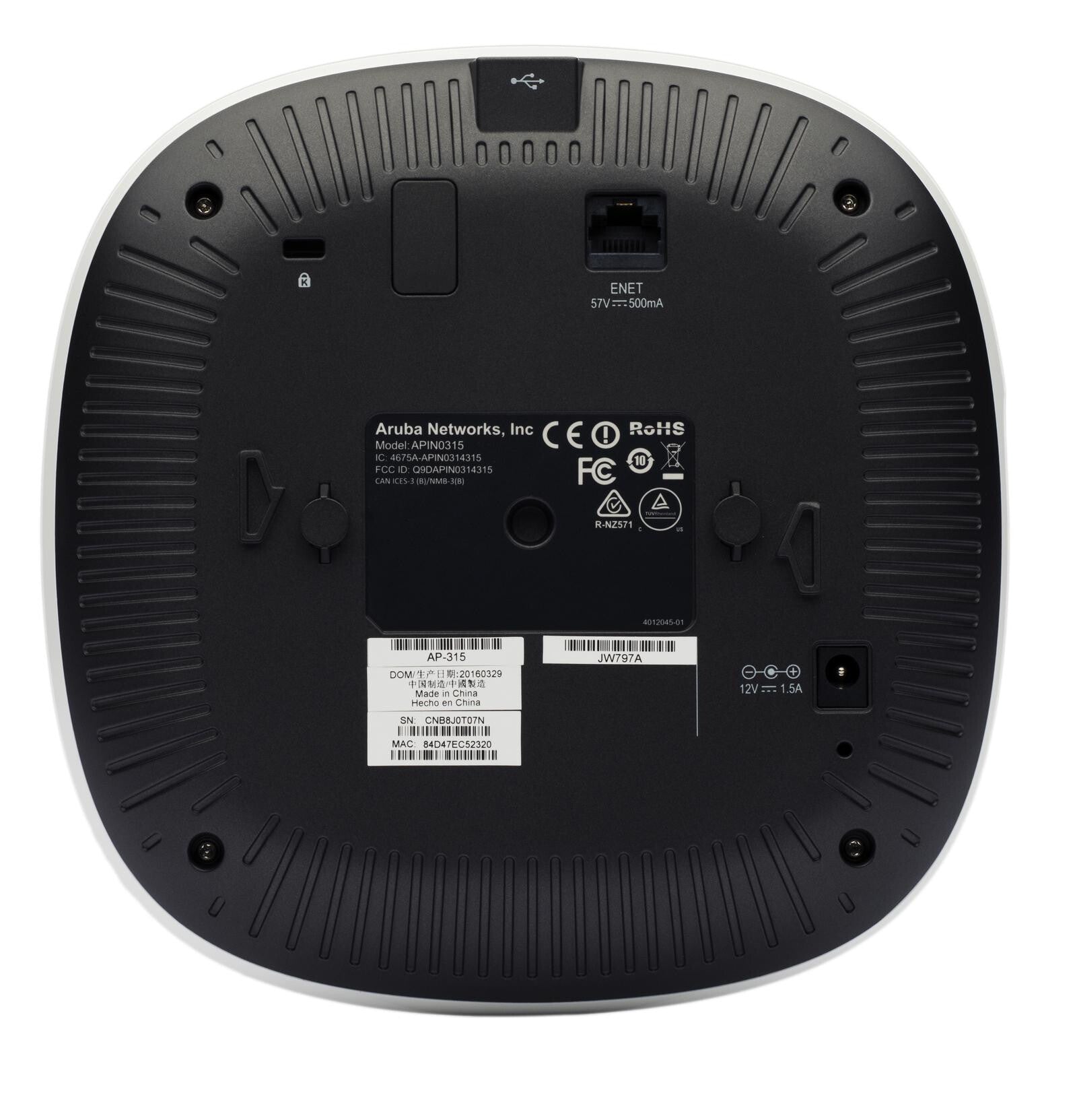 Aruba AP-315 802.11n/ac 2x2:2/4x4:4 MU-MIMO Dual Radio Integrated Antenna AP, Refurbished