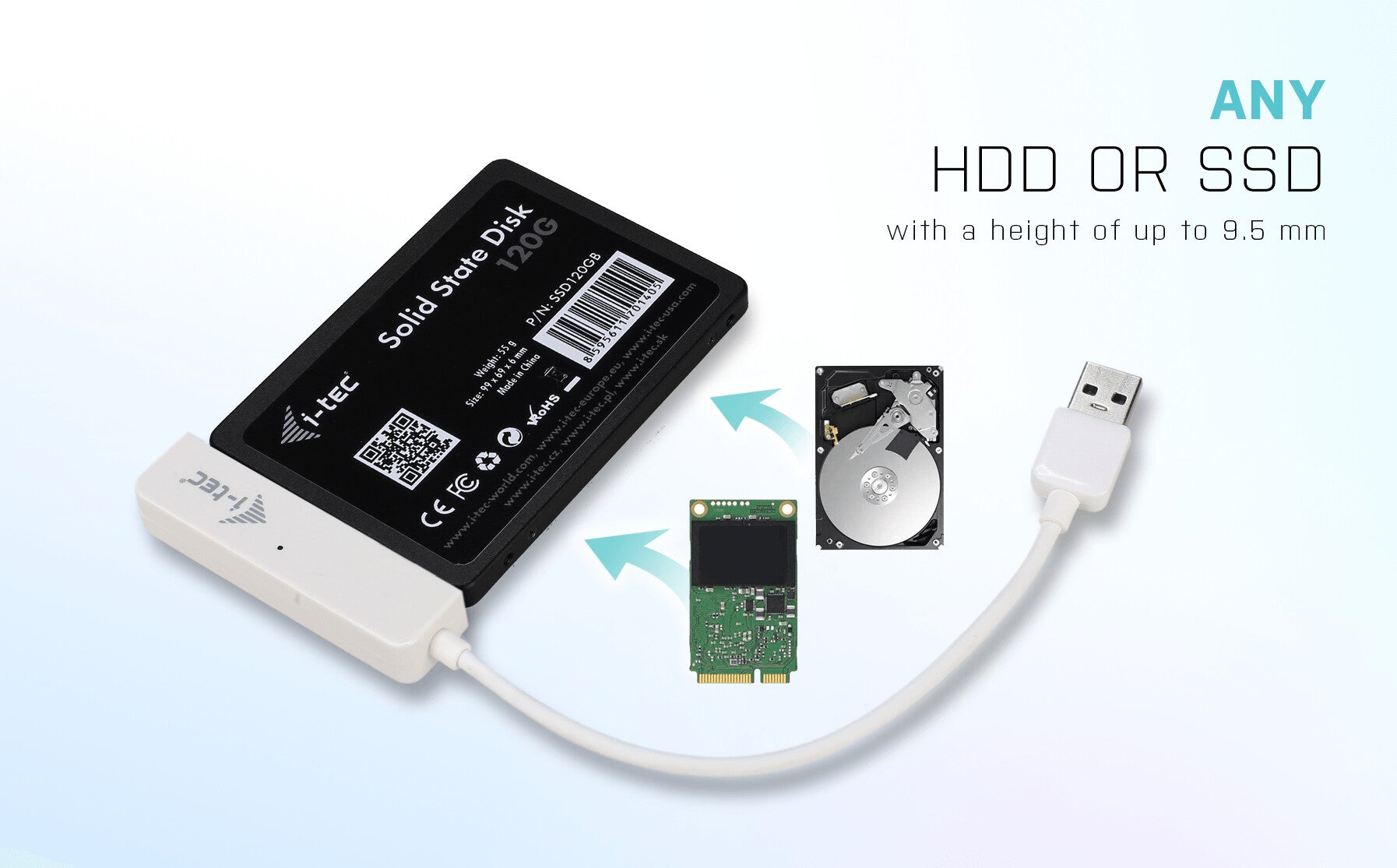 i-tec MySafe USB 3.0 Easy is external enclosure for connecting 2.5" SATA disks of all capacities to your PC, notebook, TV or other multimedia device via USB interface, through which is also powered. The enclosure is also suitable for moving data from a damaged notebook. Connecting via USB 3.0 offers easy and high speed data transfer (up to 5 Gbps). Backward compatibility with USB 2.0 is a commonplace.