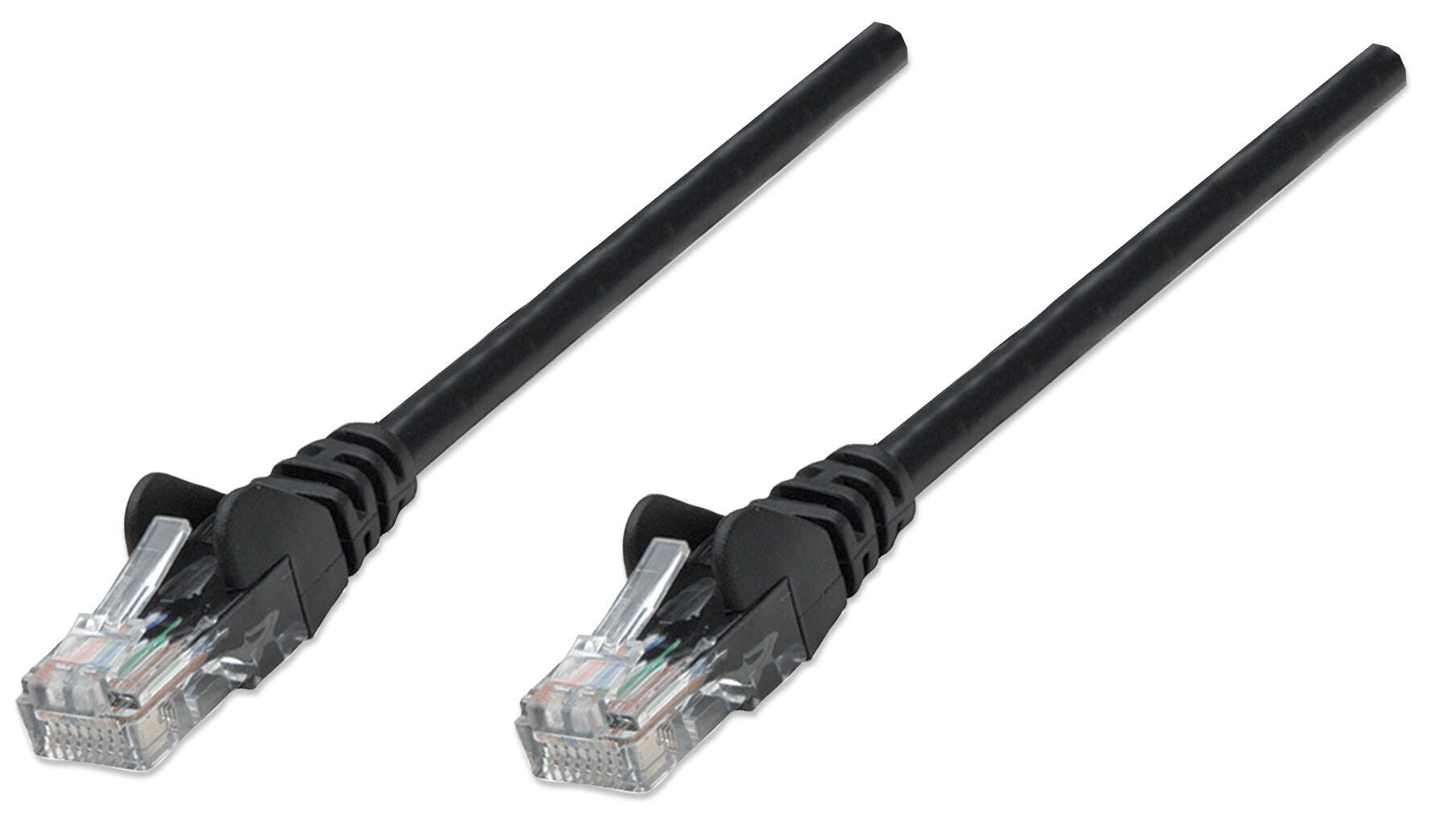 Intellinet Network Patch Cable, Cat5e, 0.25m, Black, CCA, U/UTP, PVC, RJ45, Gold Plated Contacts, Snagless, Booted, Lifetime Warranty