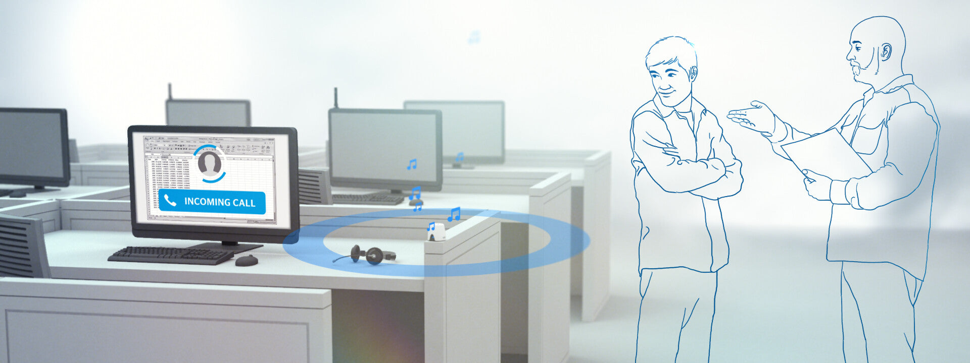 - Ensures fewer missed calls – especially in headset environments
