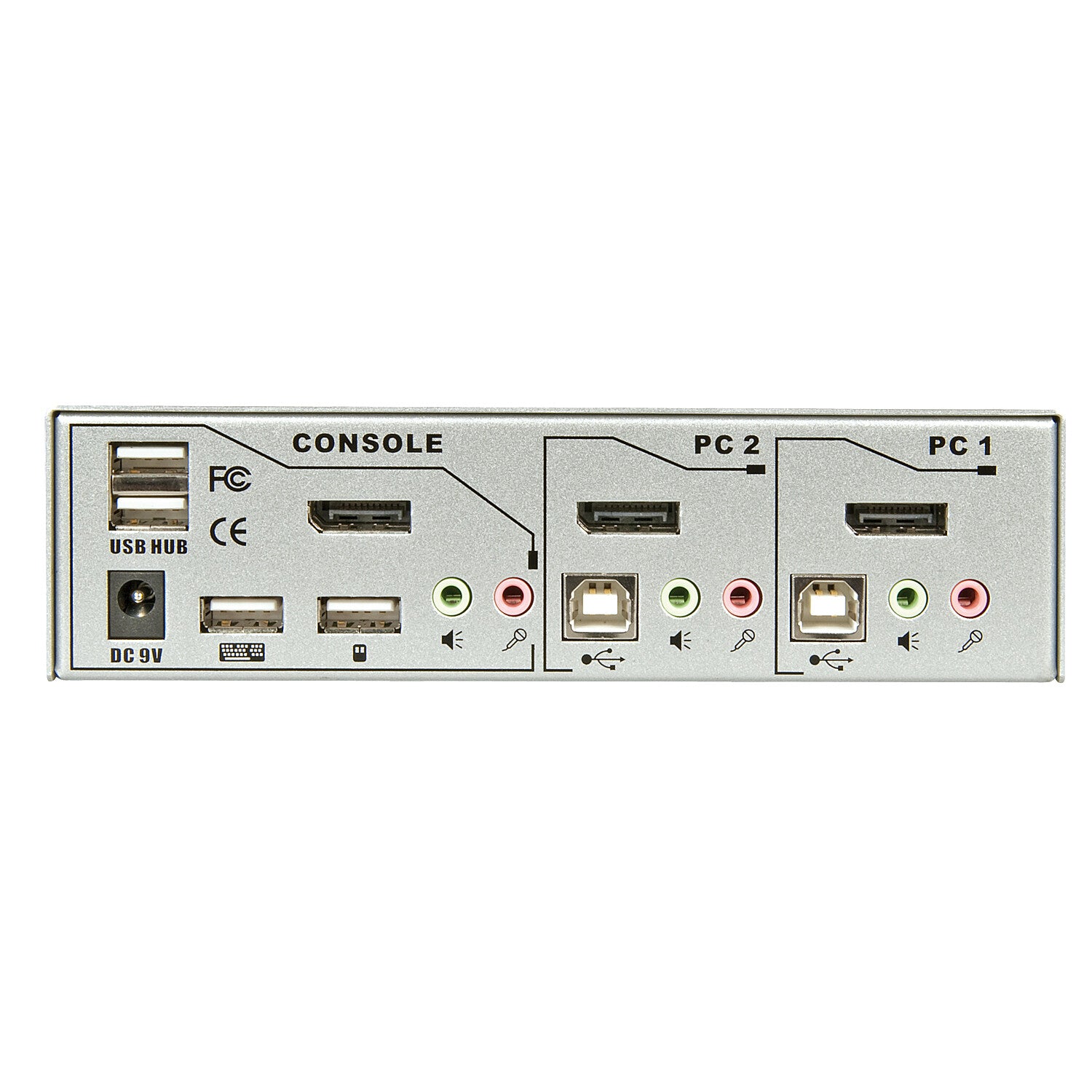 Provides KVM control of 2 DisplayPort equipped PCs and also allows connected USB devices to be shared