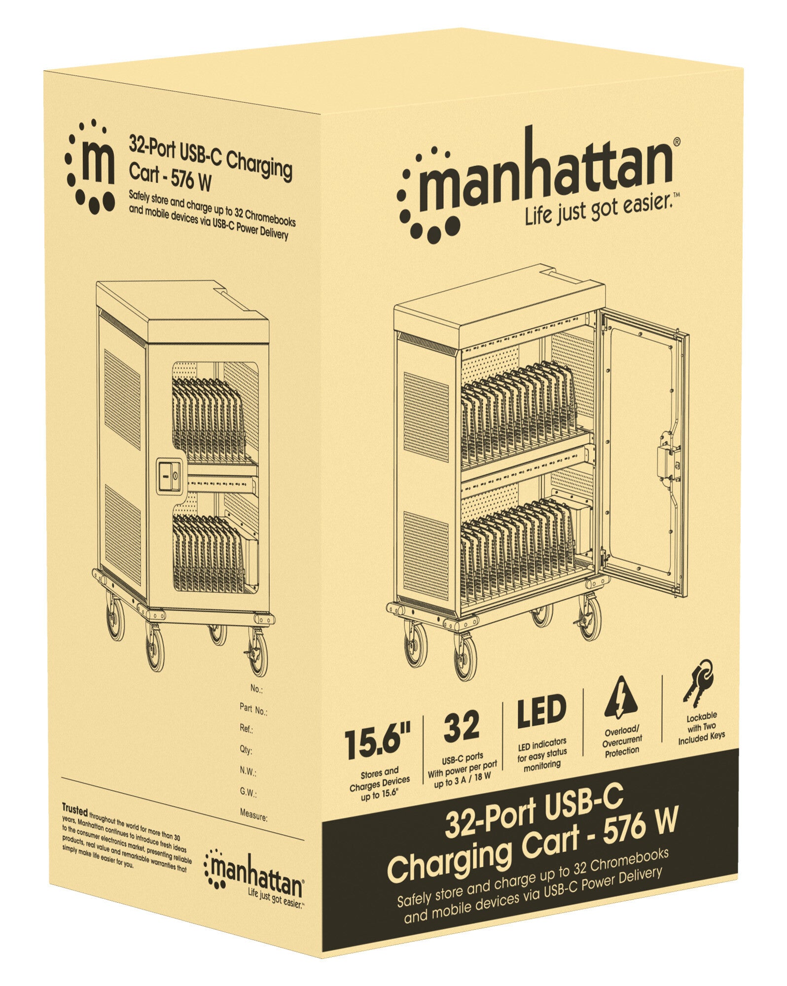 Charging Cart - a mobile charging solution for hospitality, educational environments and more Visitors, guests and employees bring their mobile devices to all sorts of venues. Give your patrons a way to charge the drained batteries of their Chromebooks, smartphones or tablets with the Manhattan 32-Port USB-C Charging Cart - 576 W. It's the ideal solution for storing and charging portable electronic devices in restaurants, schools, gyms, doctor’s offices, universities, hotels, car rental agencies and more.
