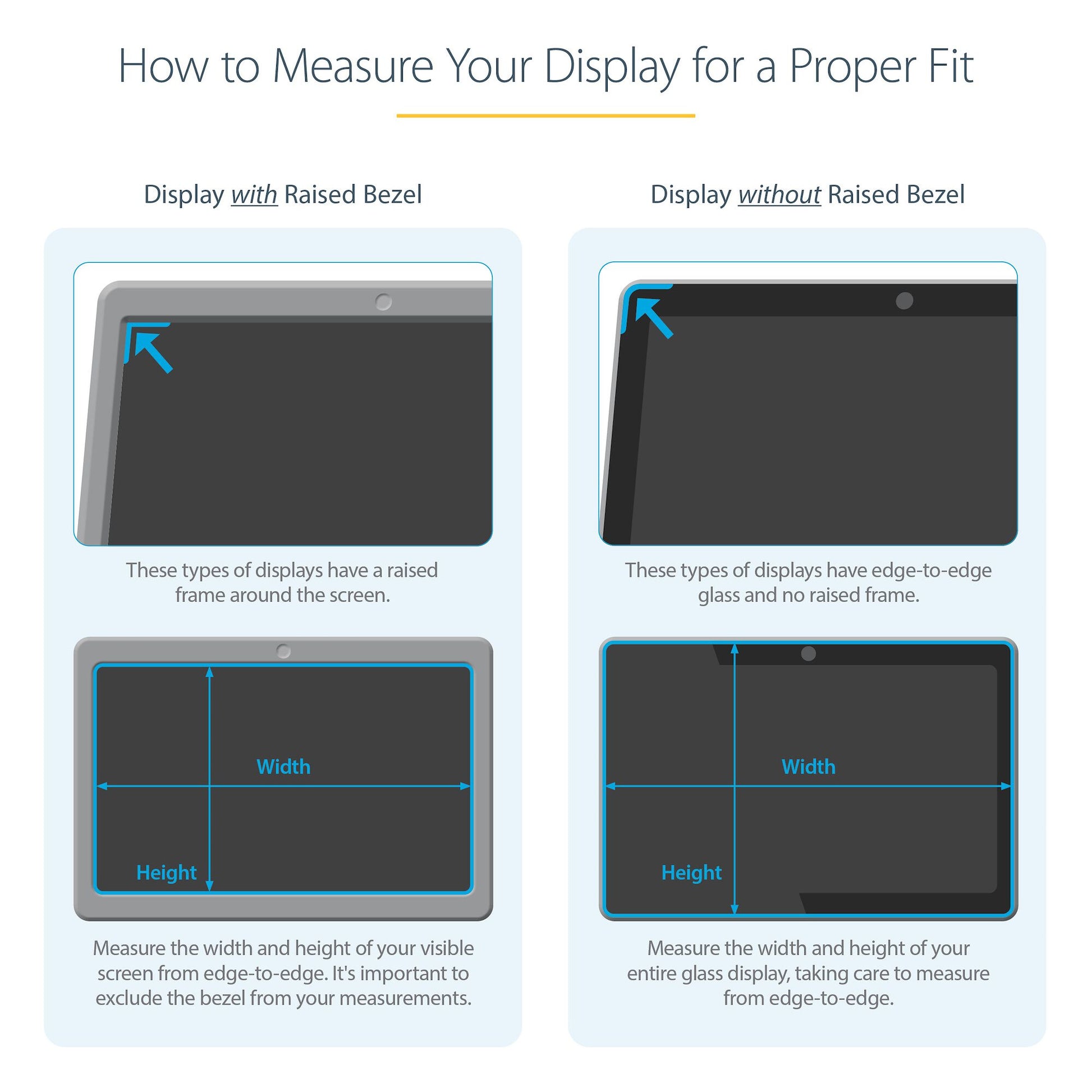 HASSLE-FREE APPLICATION: Install the privacy screen protector using the included adhesive strip for bezel-less/slim bezel displays, or use the mounting tabs on displays with raised bezels to have the ability to switch between the glossy or matte sides