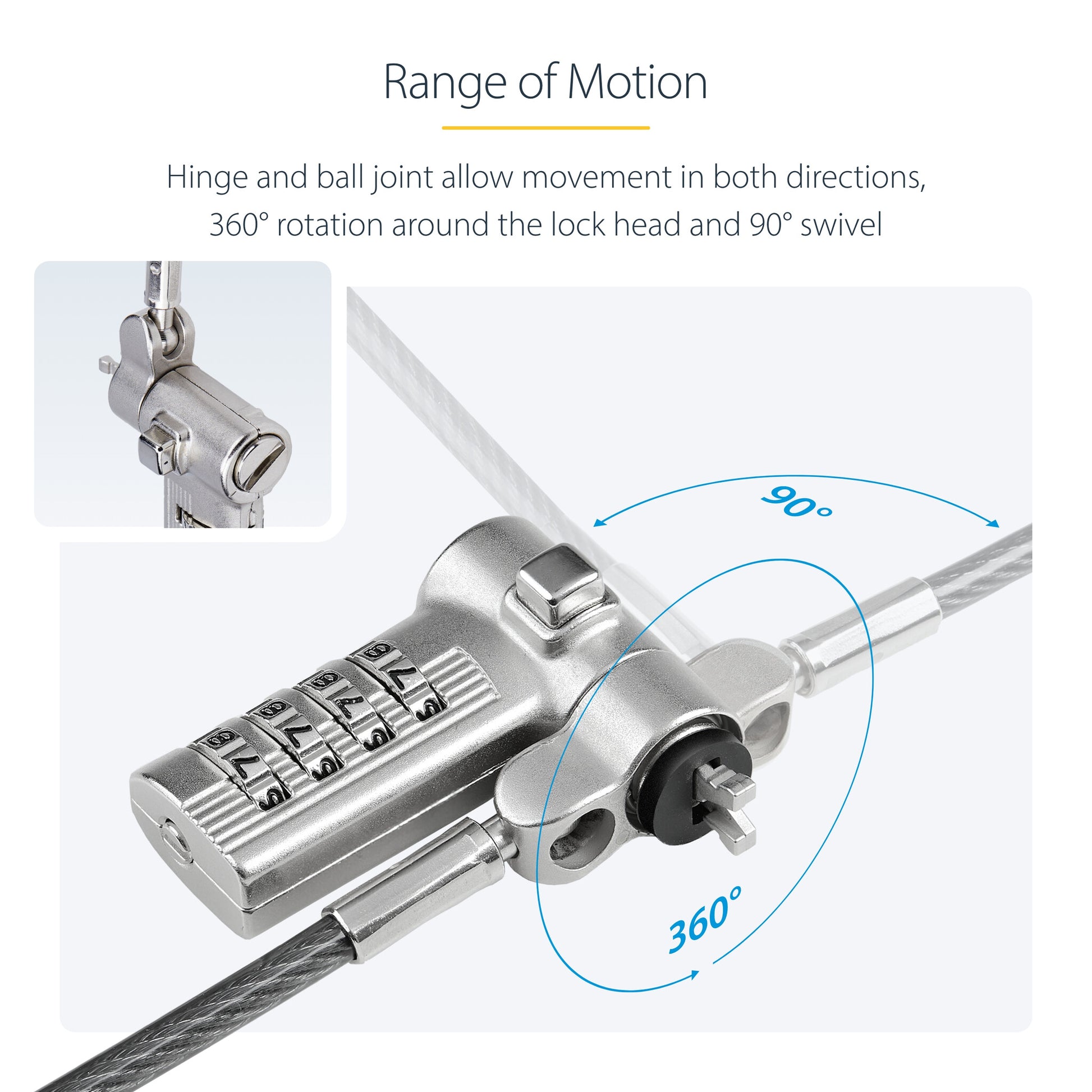 - CLEVER DESIGN: Ball joint enables 360° rotation, and the elbow joint's 90° pivot help reduce coiling and minimize strain on the slot; Protective spacers are included to prevent damage to the laptop and improve the fit; Carbon steel cut resistant cable