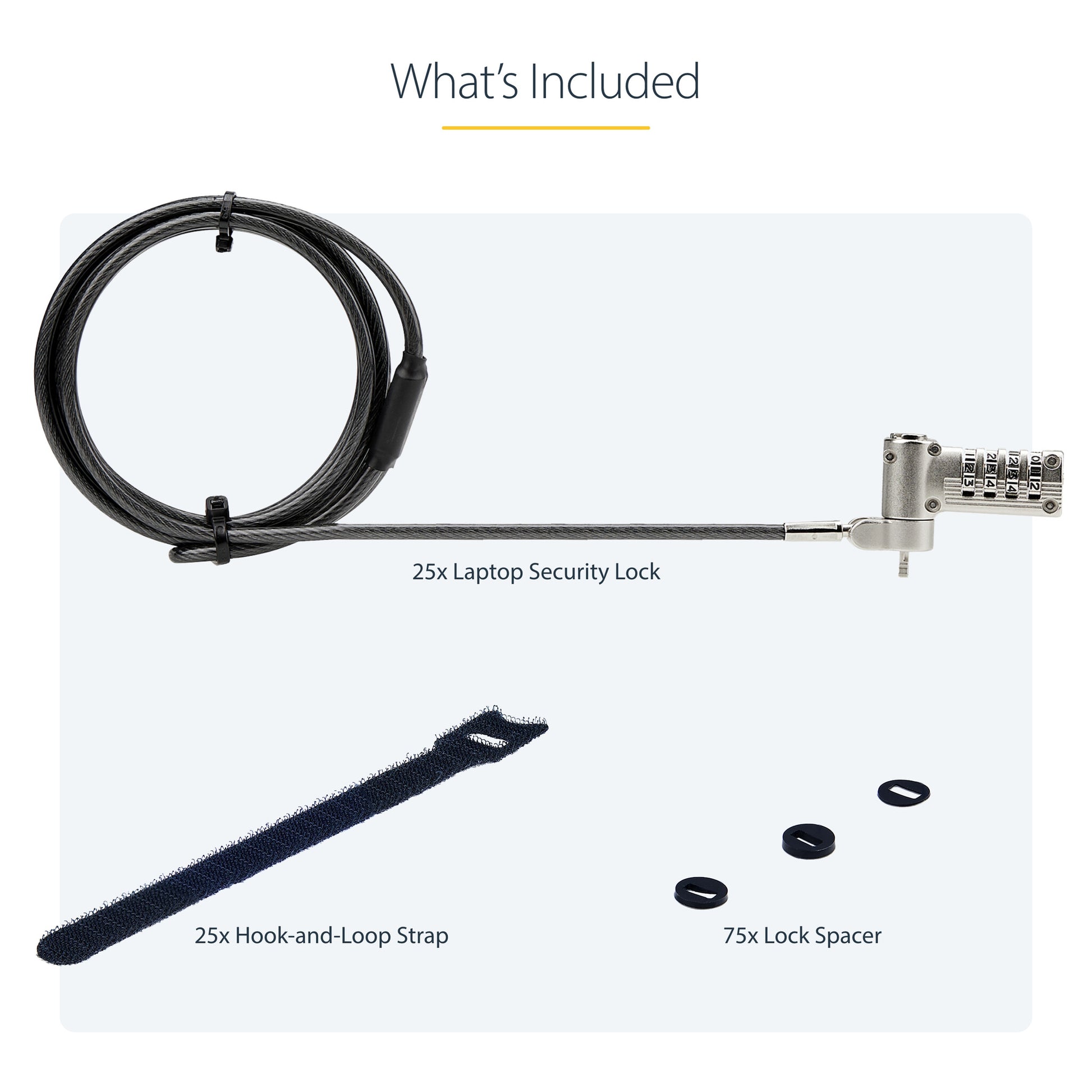 StarTech.com 25-Pack Universal Laptop Lock 6.6ft (2m), Serialized Security Cable for Notebook, Compatible With Noble Wedge®/Nano/K-Slot, Keyless Combination Cable