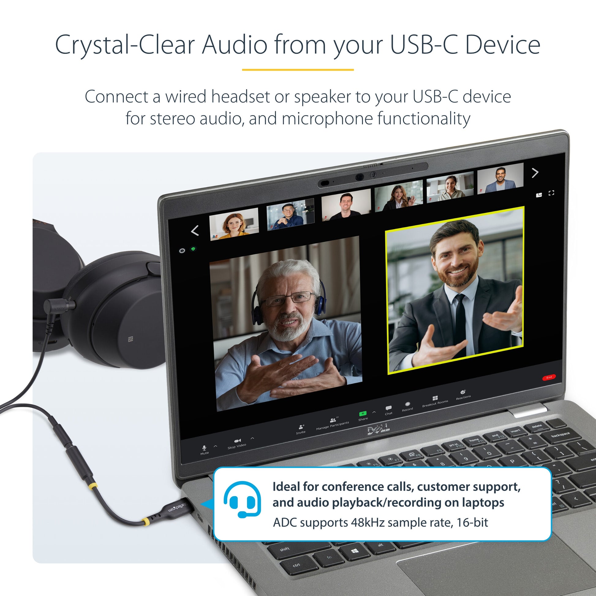 COMPATIBILITY: Universal compatibility with USB-C and Thunderbolt hosts, including laptops, USB-C smartphones and tablets; Driverless design works with any operating system (Windows/MacOS/Linux/iOS/Android); Supports wired headsets with in-line controls