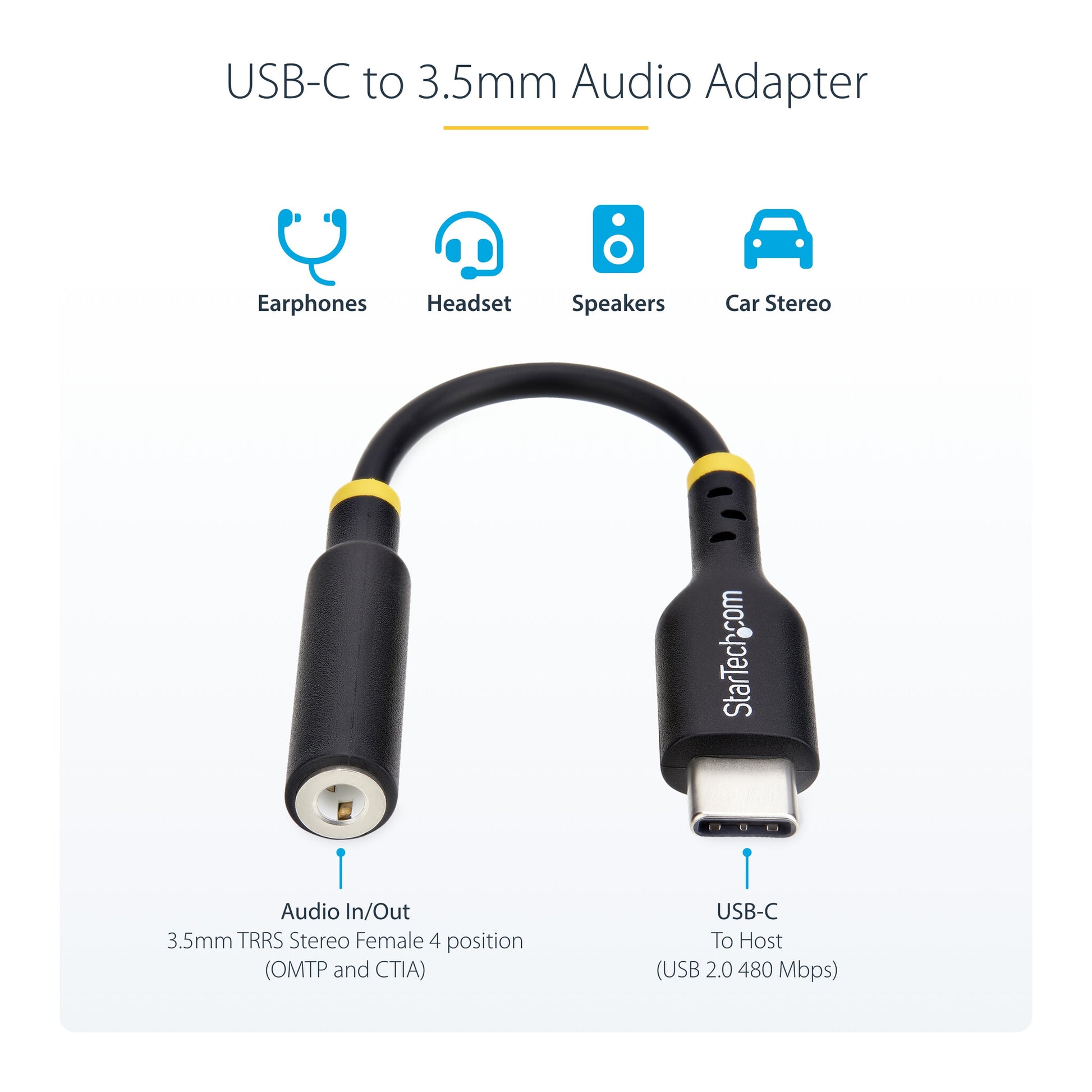 USB-C TO 3.5MM AUDIO ADAPTER: Add support for wired headset or speakers to a USB Type-C enabled device with this earphone converter; TRRS jack supports both stereo sound and microphone functionality
