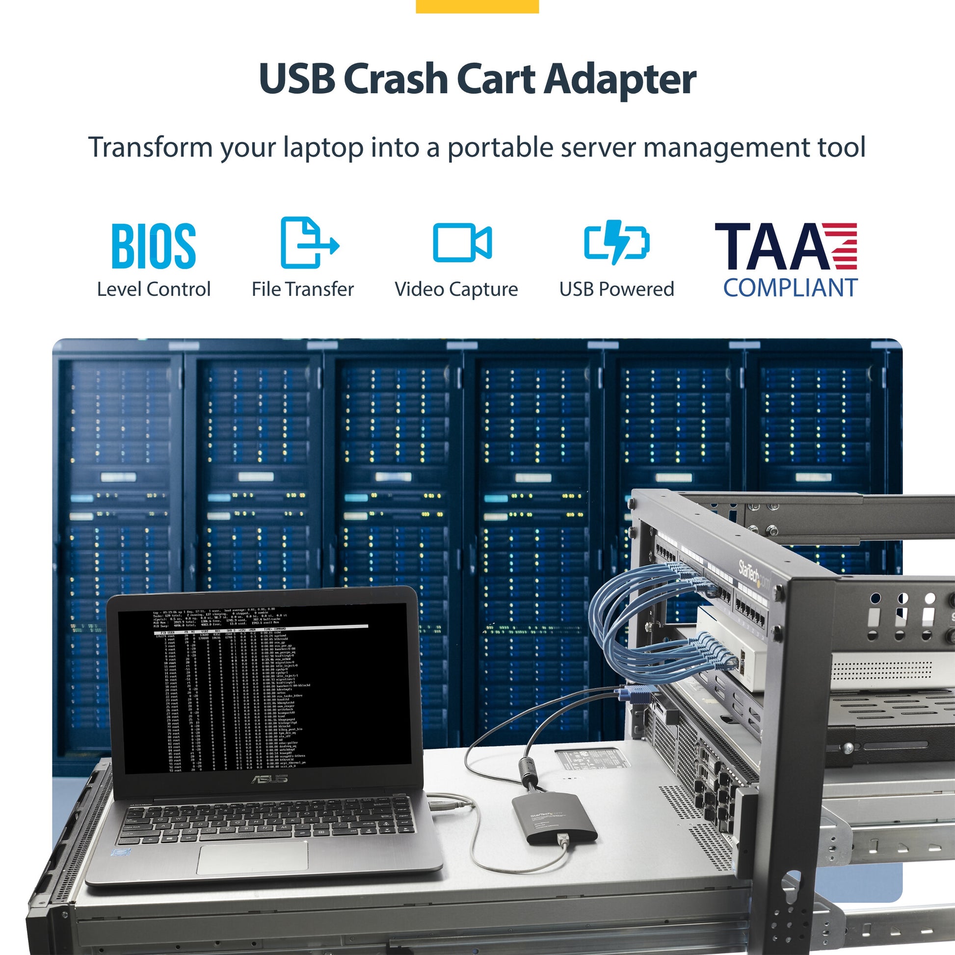 The USB crash cart adapter gives you control of a headless system, turning your laptop into a portable crash cart for rack servers, PCs, ATMs, kiosks, and more.