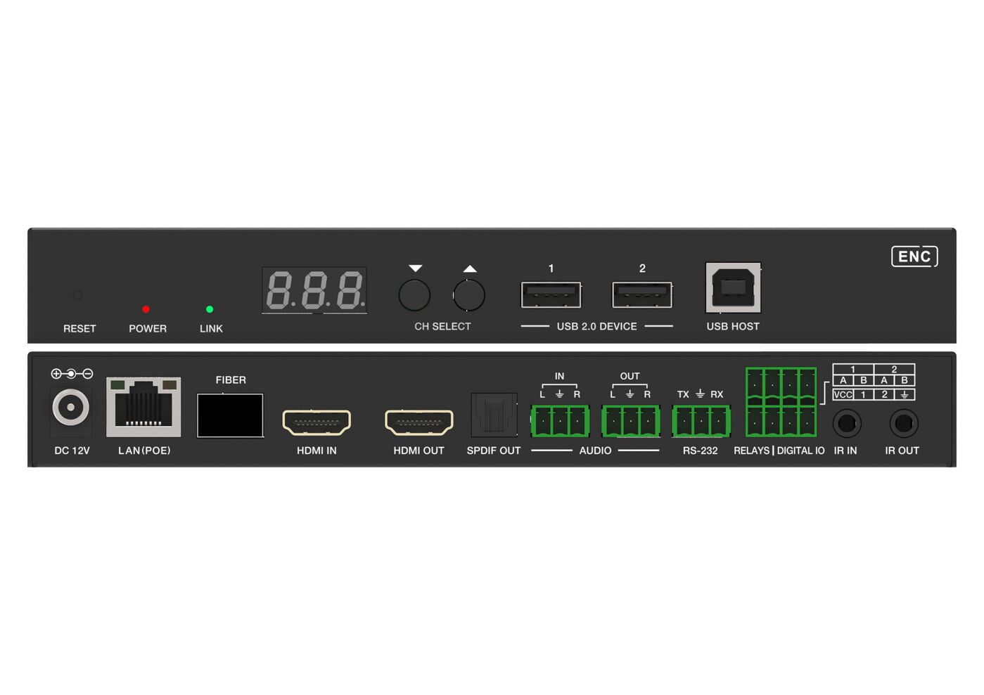 The product supports ARC/eARC/S/PDIF/Analog audio return function, also supports USB2.0/KVM/Camera, 1G Ethernet, bidirectional RS- 232, two-way IR and POE function.
